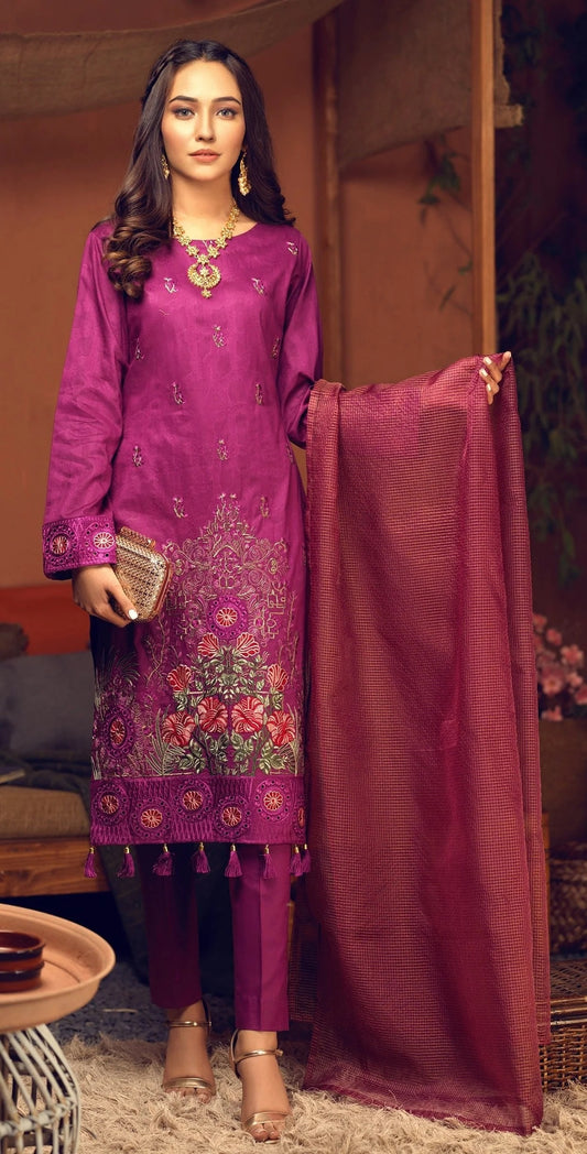 Salitex Signature Embroidered Broshia 3pc Unstitched Dress - WK 475