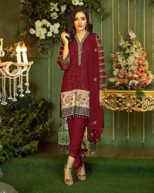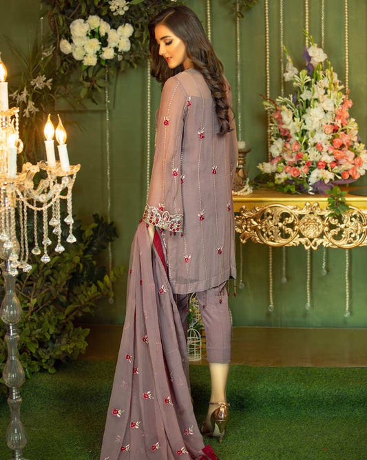 Meraki Embroidered Chiffon 3 Piece Unstitched Suit - 03