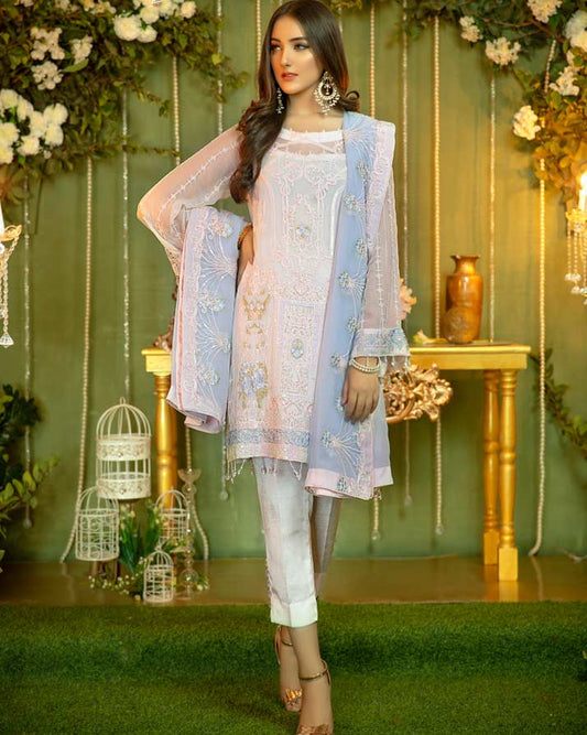 Ramsha Embroidered Chiffon Unstitched 3 Piece Suit - 1407 Perfection Glaze