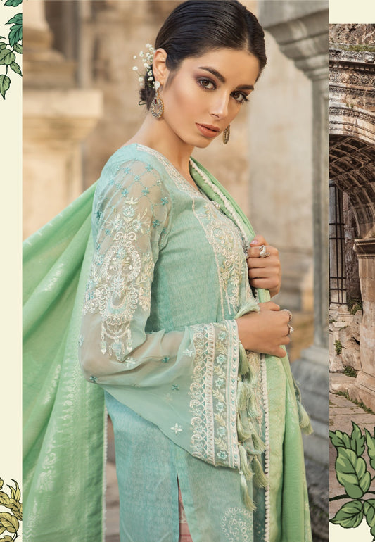 Cross Stitch Embroidered Lawn 3 Piece Unstitch Dress - 08 Relish Palm