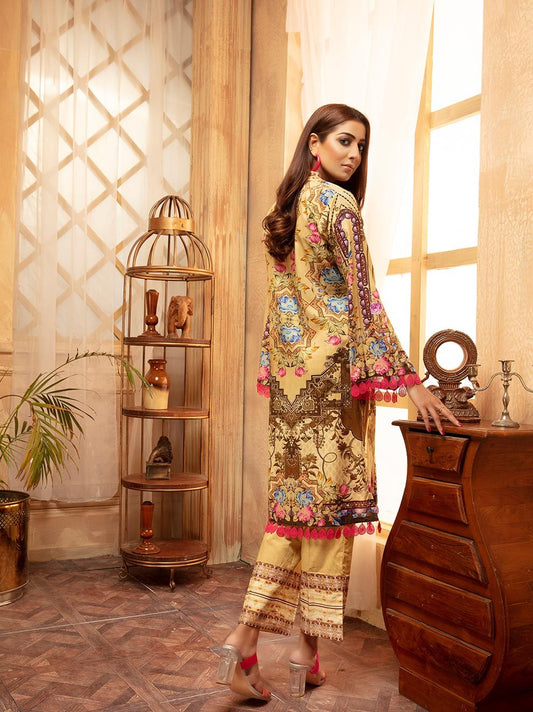 NUR Rang Barang Printed Linen Unstitched 2pc Suit - RB 01