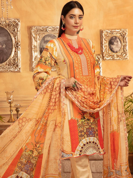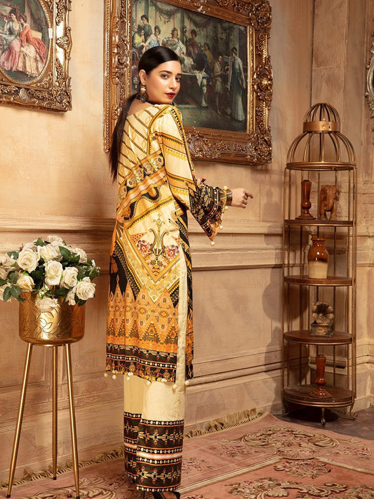 NUR Rang Barang Printed Linen Unstitched 2pc Suit - RB 03