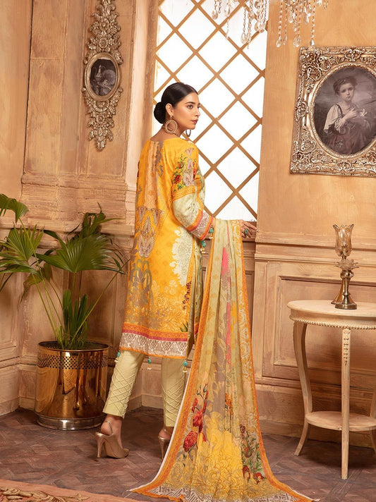 Jazmin iRis Embroidered Linen 3 Piece Unstitched Dress - 07 Myrica