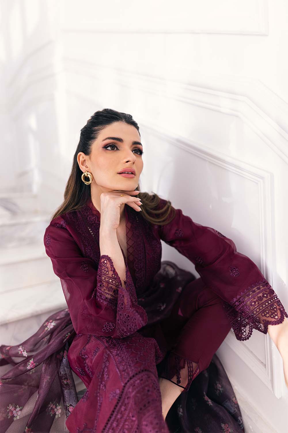 Ensembles By Azure Embroidered Organza Suits Unstitched 4 Piece VRES038a - Vintage-Rose
