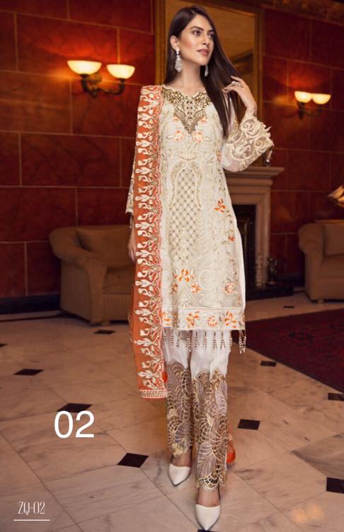 Zebtan Zircon Embroidered Chiffon Unstitched 3 Piece Suit - ZQ-02